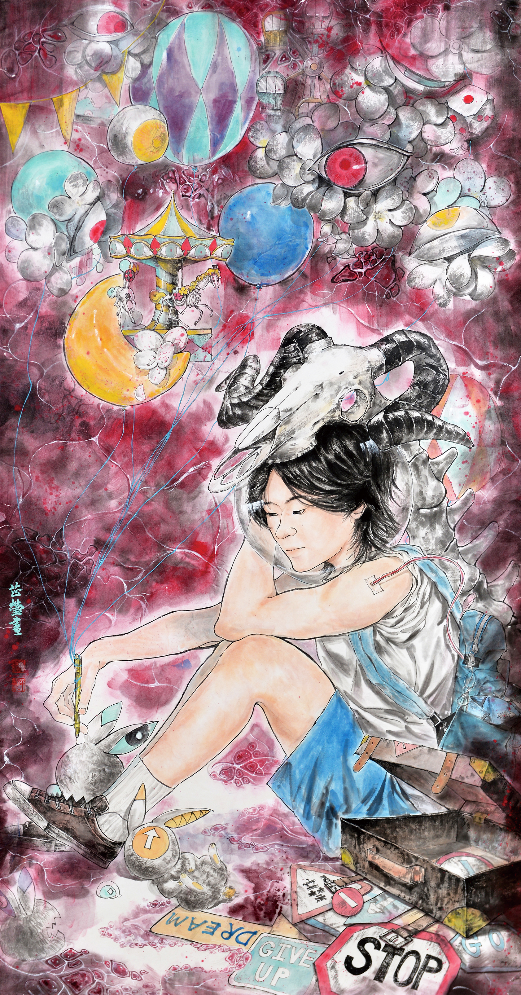 我的筆纏著許許多多的氣球,那是夢想、理想、希望,是我兒時做的夢,是我現在忘得徹底的夢。