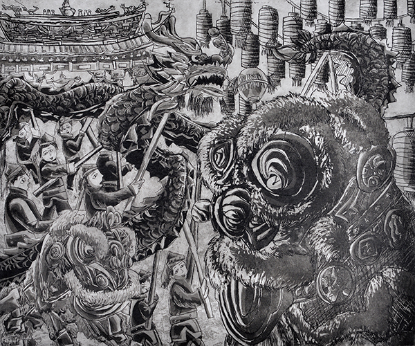 台灣廟會熱鬧的景象,舞龍舞獅生動有趣的傳統藝術,透漏著本土濃厚的人情味。